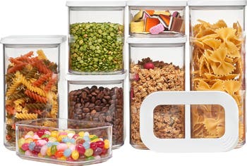 A stackable set of seven modular storage containers makes organizing drawers and pantries effortless, thanks to airtight seals, see-through lids and a streamlined, space-saving design.