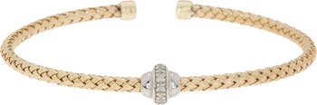 An 18K gold plated finish elevates the look of a two-tone bangle accented with sparkling diamonds.