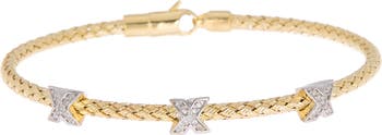 - 18K gold vermeil sterling silver braided cuff bracelet with diamond accented "x" details.