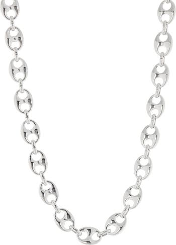 A puffy mariner-chain necklace features an 18-karat white-gold plating for additional shine to your everyday ensemble.