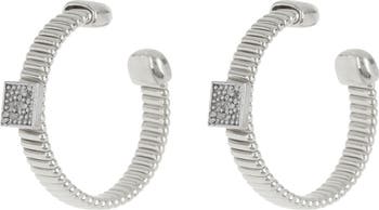 Petite diamond accents add subtle glamour to these Italian-made hoop earrings with a bold textured finish.