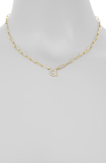 Diamond Initial Charm Paper Clip Chain Necklace