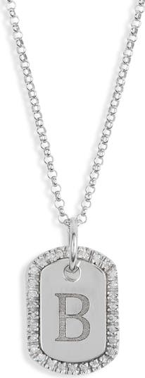 Diamond Initial Dog Tag Pendant Necklace