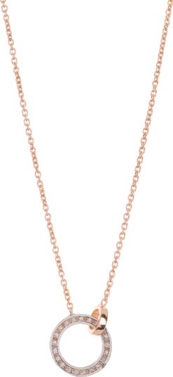 Bright and brilliant diamonds fill the open circle of this delicate chain necklace.
