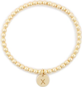 An initial charm brings personality to this ball beaded bracelet that stretches over your wrist.