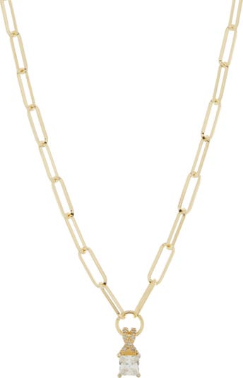 A princess-cut diamond pendant illuminates the paper-clip chain of this Italian-made necklace finished with high-shine gleam.