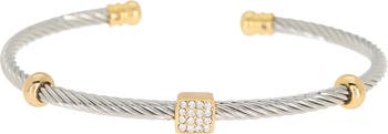 Pave CZs add a stunning sparkle to this Italian-made twisted cable cuff bracelet.