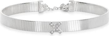 A slanted ribbed texture gives modern style to this chain bracelet that's centered with a diamond-adorned 'X' charm.