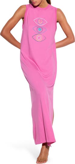 All eyes settle on you when you breeze in wearing a cotton maxi marked with softly captivating ocular graphics.