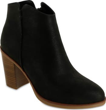 Add some modern flare to your wardrobe with these unique topline block heel boots.