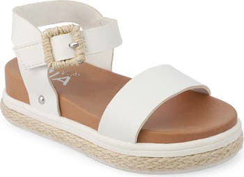 Braided jute adds darling detail to the midsole of a cushy wedge sandal outfitted with a flexible white grip sole that's perfect for play.