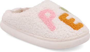 A superfuzzy, supercute smiley patch leads the way to sweet dreams and cozy mornings in this plush slipper with a cushy padded insole.
