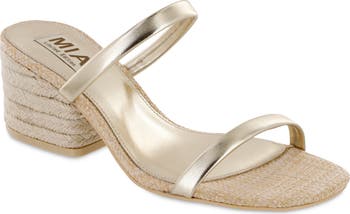 Tubular straps create modern intrigue on an espadrille-inspired slide sandal balanced by an angular square toe and jute-wrapped block heel.
