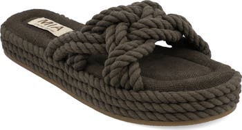 Twisted rope forms the straps and trim of a lightly cushioned sandal that offers plenty of warm-weather sophistication.
