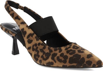 This slingback pump is updates for the season with a stretchy vamp strap and a walkable fluted heel.