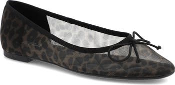 A dainty bow tops this chic leopard-printed flat made from breathable mesh and grounded by a lightly quilted footbed for easy-wear comfort.