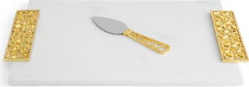 A perfect gift for anniversaries, birthdays and other special occasions, this marble cheese board and matching spreader feature sweet heart-textured handles warmed by goldtone plating.