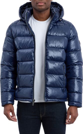 Stay warm and dry in this wind- and water-resistant puffer jacket boasting a removable hood, secure zip pockets and lightweight down-alternative fill.