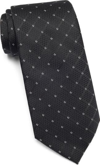 Neat geometric patterns add texture and understated detail to this dapper tie crafted from silky satin.