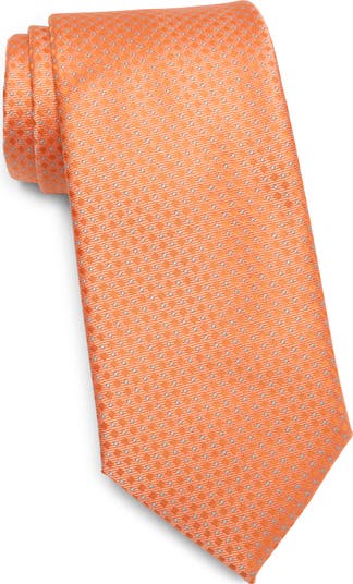 A smart geometric pattern and smooth satin texture make this dapper tie a standout accessory for both formal and semiformal ensembles.