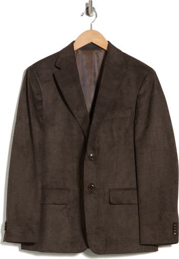 A softly brushed finish brings classic, comfortable detailing to a sport coat that's tailored in a slim fit and fitted in the waist for a traditional silhouette.