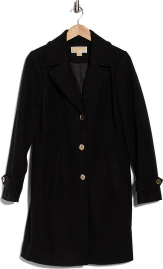 Stay warm on your commute in this single-breasted coat framed by gleaming buttons and notched lapels for polished style.