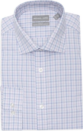 Quick-wicking stretch fabric keeps you cool and comfortable from business meetings to dinner plans in this dress shirt patterned in plaid checks.