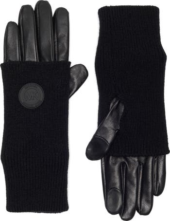 Fold-over knit cuffs enhance the cozy feel of these soft leather gloves accented by a rubber logo stamp.