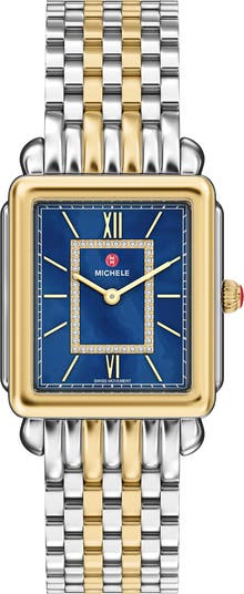 A Deco-inspired design sparked with 44 twinkling diamonds at the mother-of-pearl dial offers unmistakable and timeless style to this two-toned watch.