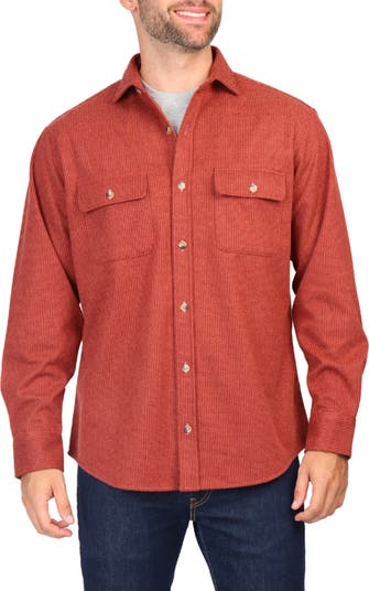 A houndstooth pattern details this handsome button-up shirt made from brushed fabric with a faux suede feel.