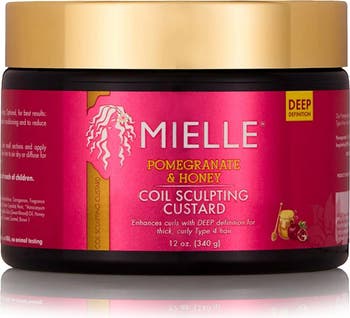 How to use: Prime wet hair with Pomegranate & Honey Leave-In Conditioner before styling. Optional: for best results, apply Mielle Mint Almond Oil after priming while hair is still wet. This will provide added conditioning and help to reduce potential flaking. Define curls by applying Coil Sculpting Custard to dripping wet hair. Divide hair into small sections and apply generously, fingering the product through making sure to coat the strands evenly. Allow hair to air-dry or diffuse for added volume. Although typically used to style Wash-N-Go's, you may style as desired.