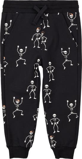 Skeletons glow as they dance in the dark to celebrate Halloween on these stretch-added joggers made from French terry organic cotton.