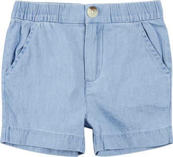 Soft, organic-cotton chambray will feel just right next to your little one's skin in these all-purpose kick-around shorts.