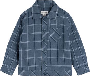 Put together a dashing look for your young one with this windowpane-check overshirt featuring a natty chevron design.