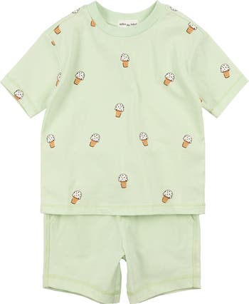 Here's the scoop: your little one is in for a special treat anytime they wear this adorable set that pairs a jersey T-shirt patterned with ice cream cones with matching mint-hued shorts.