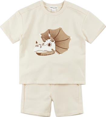 Your little archeologist will definitely dig the comfort of this dino-mite set that pairs a roomy short-sleeve shirt with matching shorts—both in soft, breathable organic-cotton French terry.