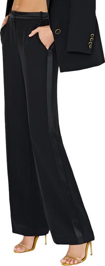 Satin trim at the waist and sides adds elevated night-out charm to these wide-leg pants that sit low on the waist for a trendy touch.
