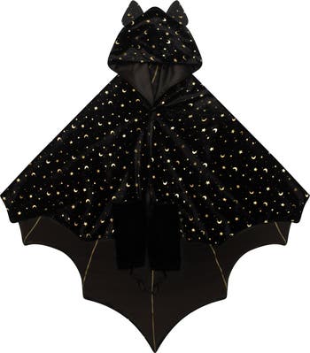 Enchanting adventures at play await your imaginative kiddo in this hooded bat cape covered in a celestial foil print.