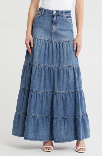 Mindy Tiered Denim Maxi Skirt