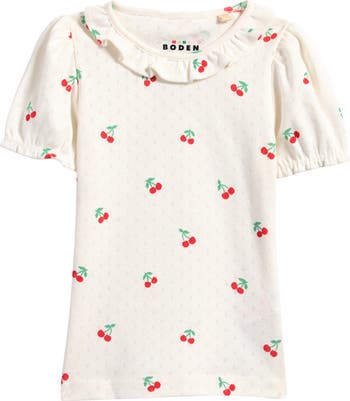 Delicious cherries sweeten this frilly pointelle-stitched top made from soft cotton that feels soft against their skin.