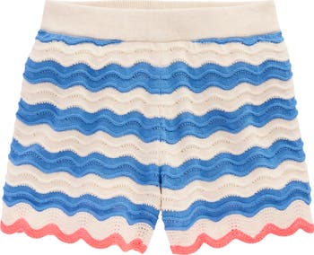 Wavy pointelle stitching lends beachy flair to comfy sweater-shorts knit from soft cotton.