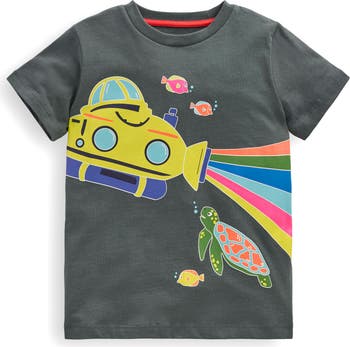 Your child will feel like a deep-sea explorer in this cotton-jersey T-shirt that's bright during the day and glows with ocean mystery after dark.