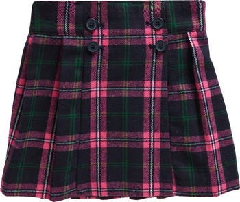A double-breasted button front charms this kilt-inspired skirt that keeps your kiddo warm with a bit of wool and a bright plaid pattern.
