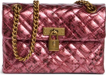 Signature quilt stitching and a logo-detailed padlock enrich a signature mini crossbody fitted with an adjustable chain strap for versatile wear.