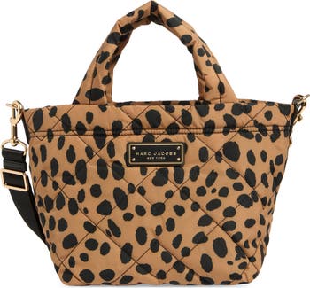 Perfectly constructed to fit only the essentials, this diamond-quilted tote is covered in cheetah spots and outfitted with an optional shoulder strap for styling versatility.