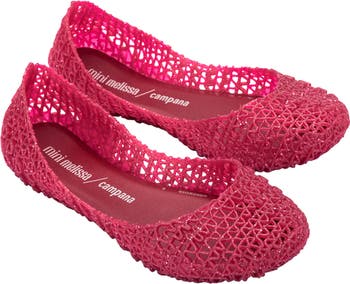 A glittery finish provides a glam update for a charming retro jelly flat that's made from fruit-scented PVC.