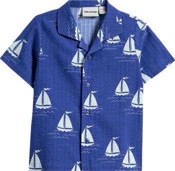 Kids' Sailboat Print Short Sleeve Organic Cotton Button-Up Shirt