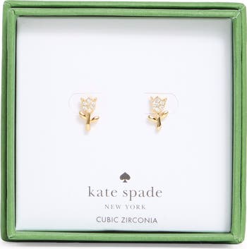 Pavé cubic zirconia illuminate these dainty tulip stud earrings that showcase signature kate spade charm.