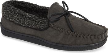 Supple suede and rawhide lacing define a charming slipper kept extra cozy with berber-fleece trim and lining.