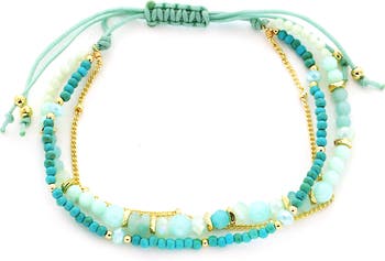 Mint-hued stones, beads and crystals trace this layered slider bracelet that brings a pretty pop of color to your stack.